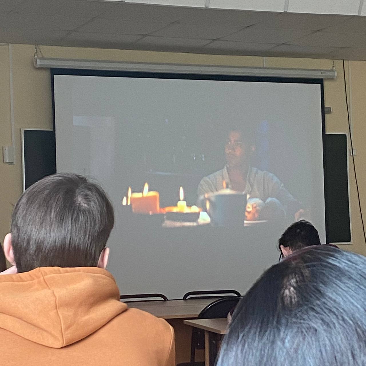 После того, как мы досмотрели фильм, началось его обсжудение. Нам были заданы вопросы касательно того, что нам запомнилось, какие цитаты дали повод задуматься. И это обсждуение было достаточно интересным. Многие смогли поделиться мнением.